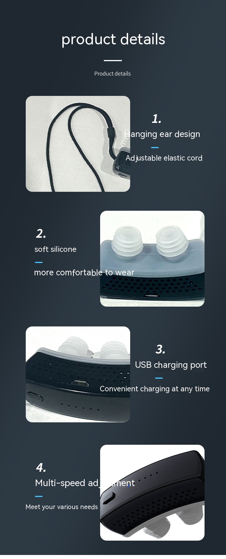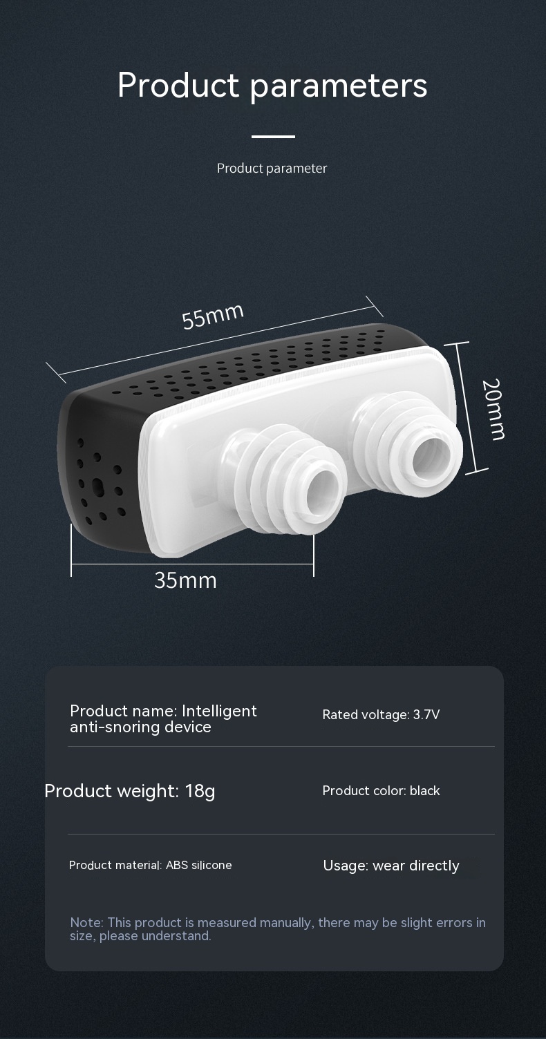 Product information: Rated voltage: 3.7V Product color: black Product material: ABS+silicone Usage: Directly worn